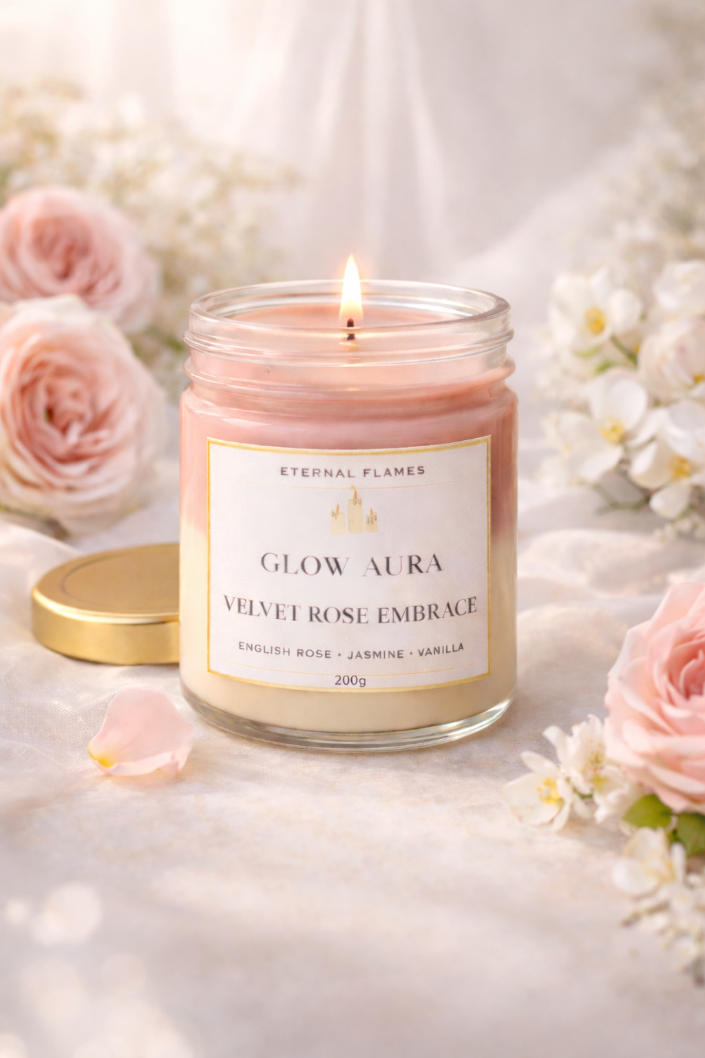 Velvet Rose Embrace opens with the delicate beauty of English Rose, unfolding into soft jasmine before settling into creamy vanilla. Romantic yet comforting, this blend feels like golden light spilling through sheer curtains — tender, graceful, and quietly indulgent.